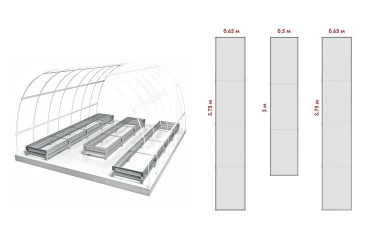 Грядки в теплицу 3х4 м, комплект из 3-х гряд