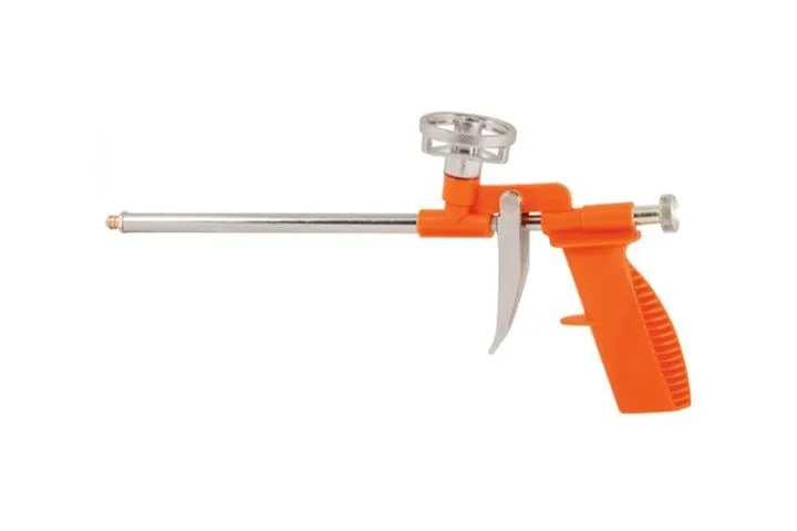 Пистолет для работы с профессиональными монтажными пенами. Носик подающей трубки и винтик выполнены из меди, корпус из пластика.