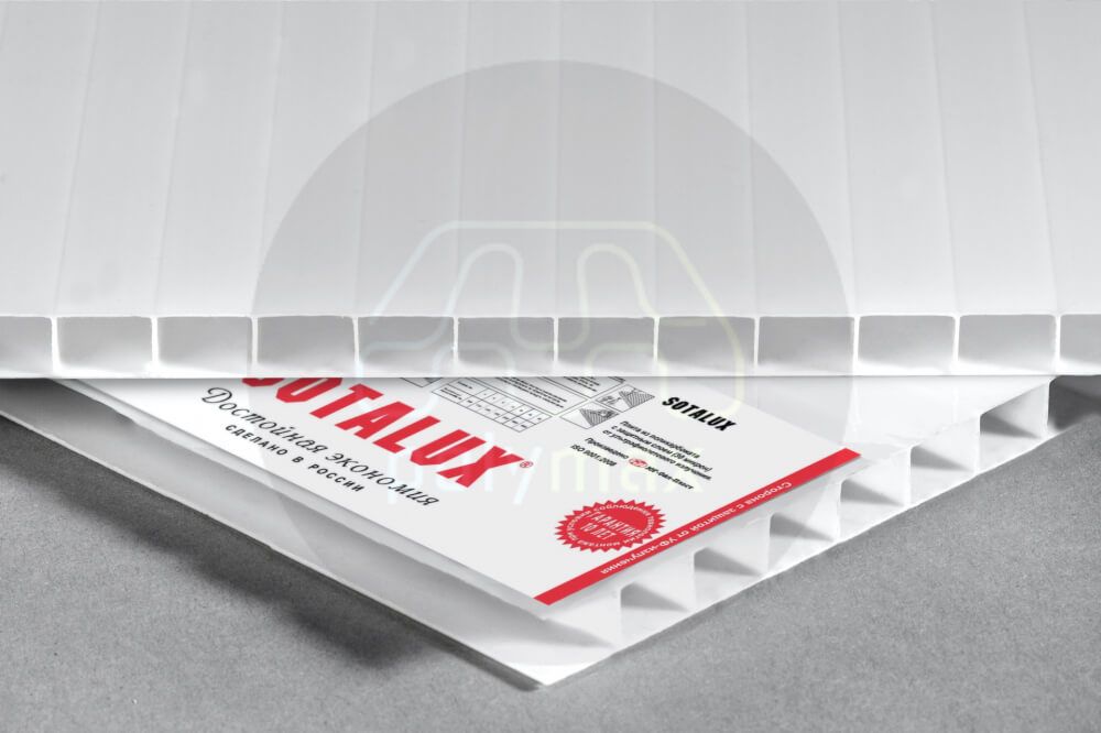 Инновационный сотовый поликарбонат «Sotalux» толщиной 4мм представляет собой ячеистые листы из бесцветных гранул полимерного пластика. Эта продукция может использоваться в качестве остекления, теплозащиты, шумоизоляции. Материал производится на заводе «Юг-Ойл-Пласт», снабжается сертификатами качества и гарантией от производителя сроком на 10 лет. Эксплуатационный период намного превышает гарантийный.